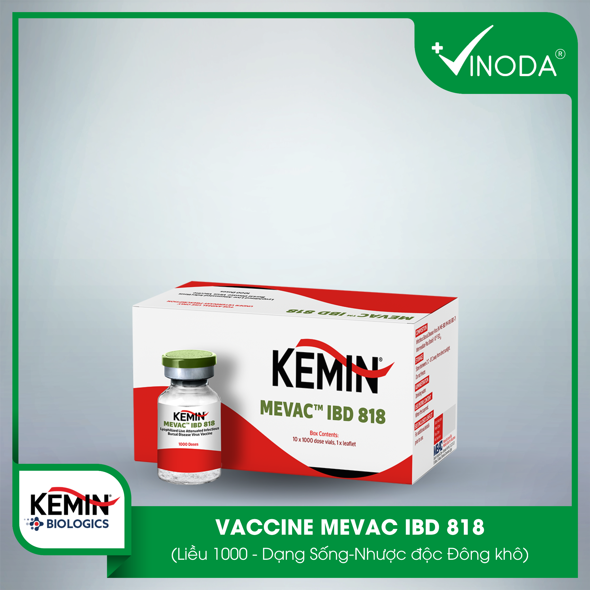 KEMIN MEVAC IBD 818 - Vaccine tạo miễn dịch chủ động cho gia cầm chống lại bệnh Gumboro chủng trung bình cộng.